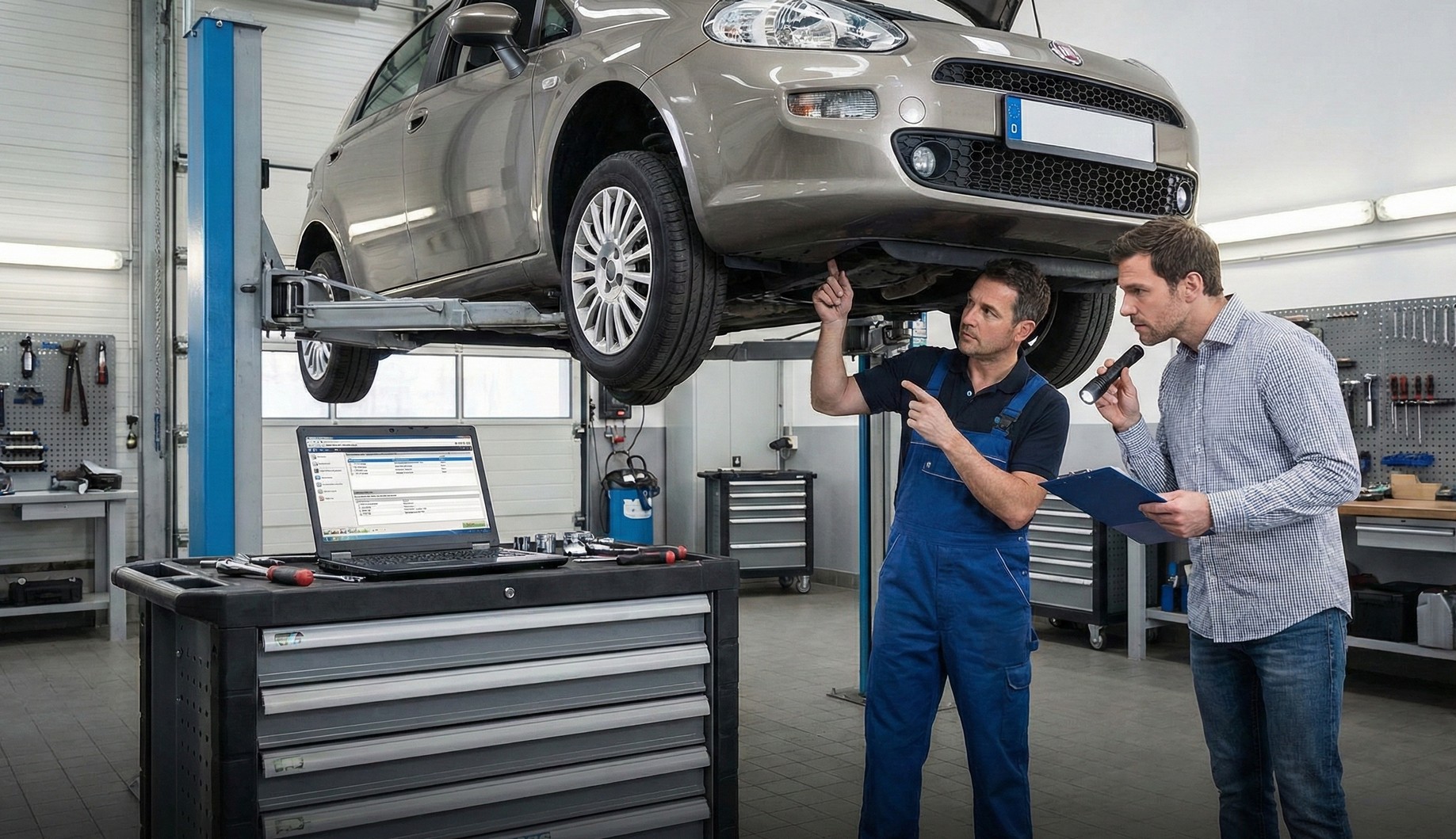 Nejlepších výsledků dosahujeme u nás v servisu, kde máme k dispozici zvedák, profesionální osvětlení a kompletní diagnostické zázemí. Mobilní kontrola v bazaru nikdy nenahradí pohled pod auto na zvedáku. Prohlídky mimo náš servis neděláme.